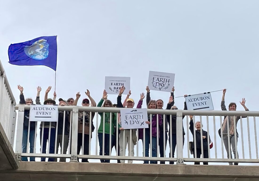 People celebrate Earth Day with other birders in this photo by the Lycoming Audubon Society.